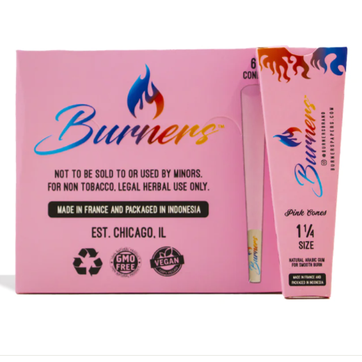 Burners 1 1/4 Size Pink Pre-Rolled Cones (6 Cones 30 Packs)