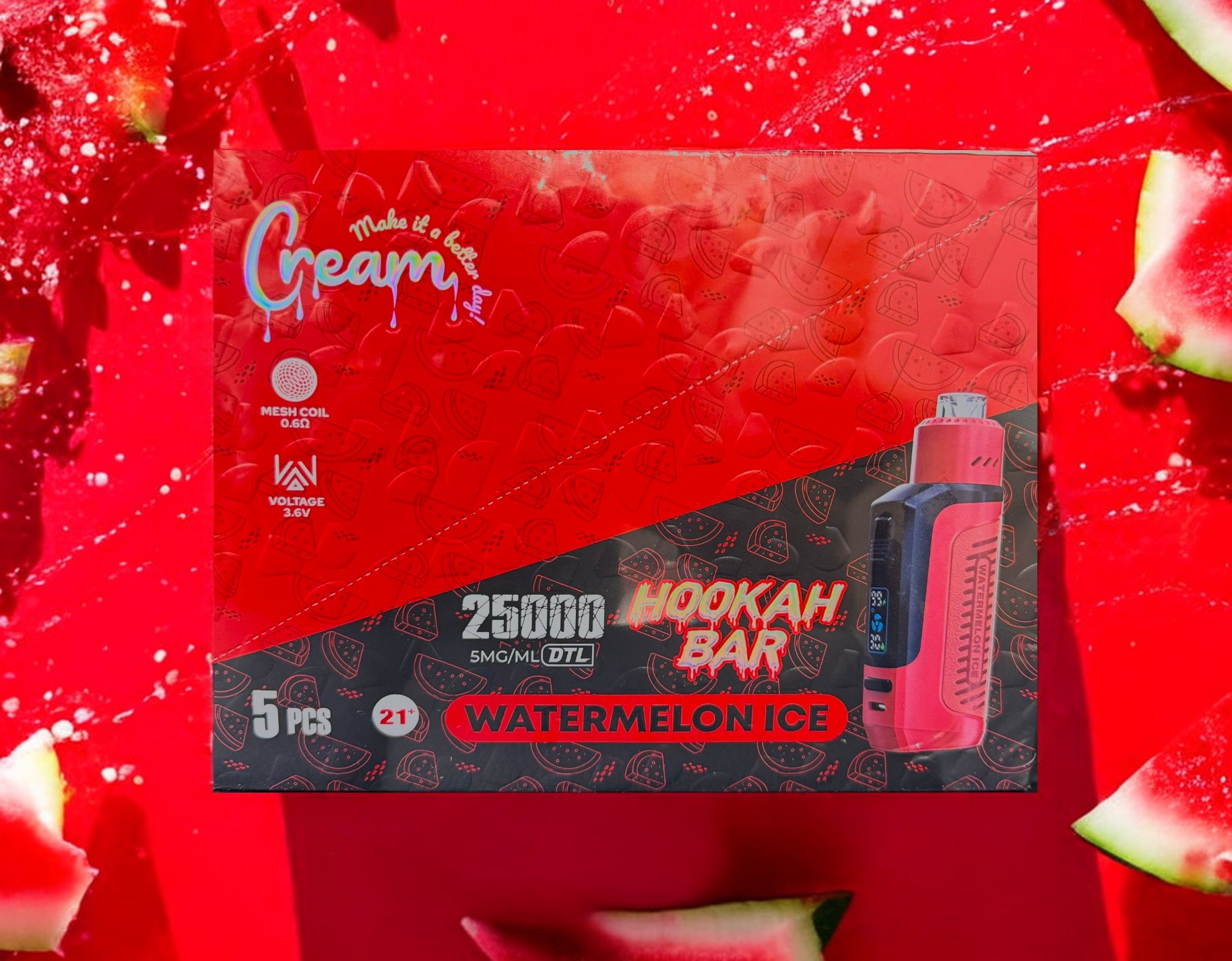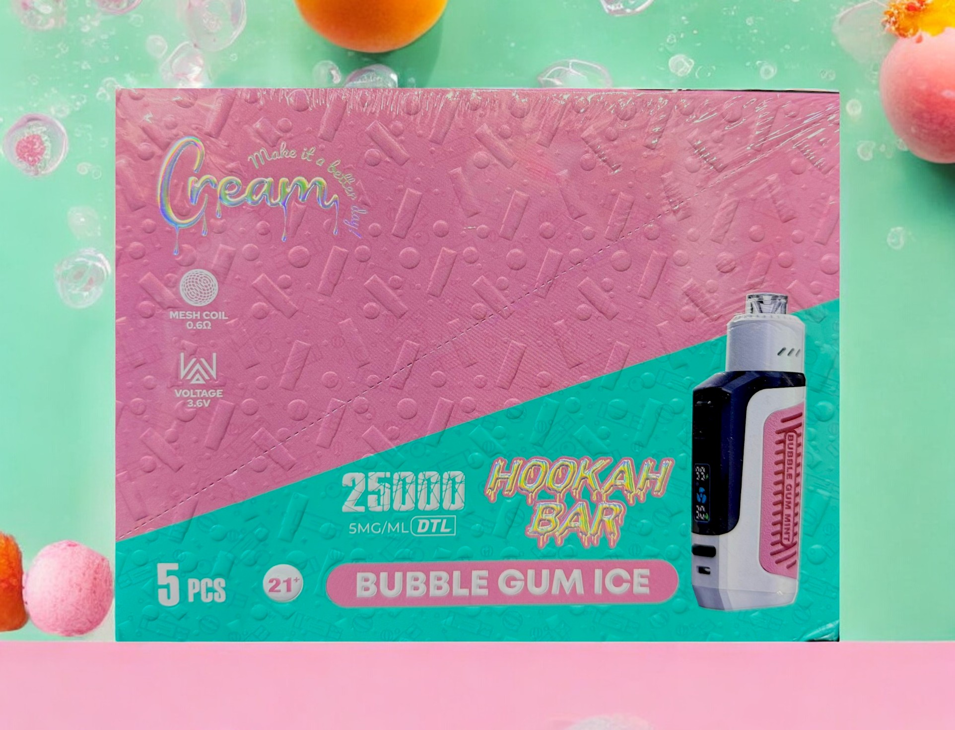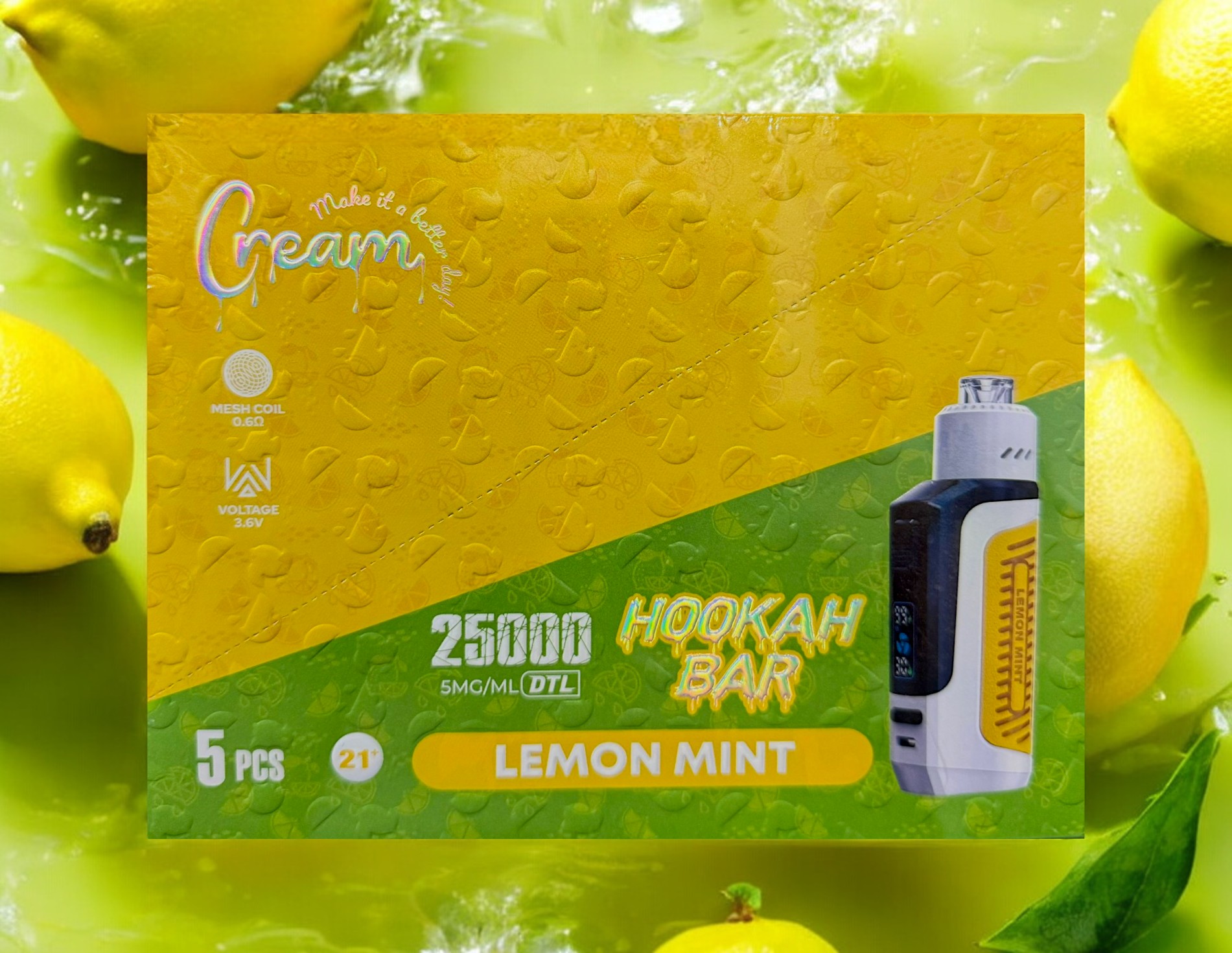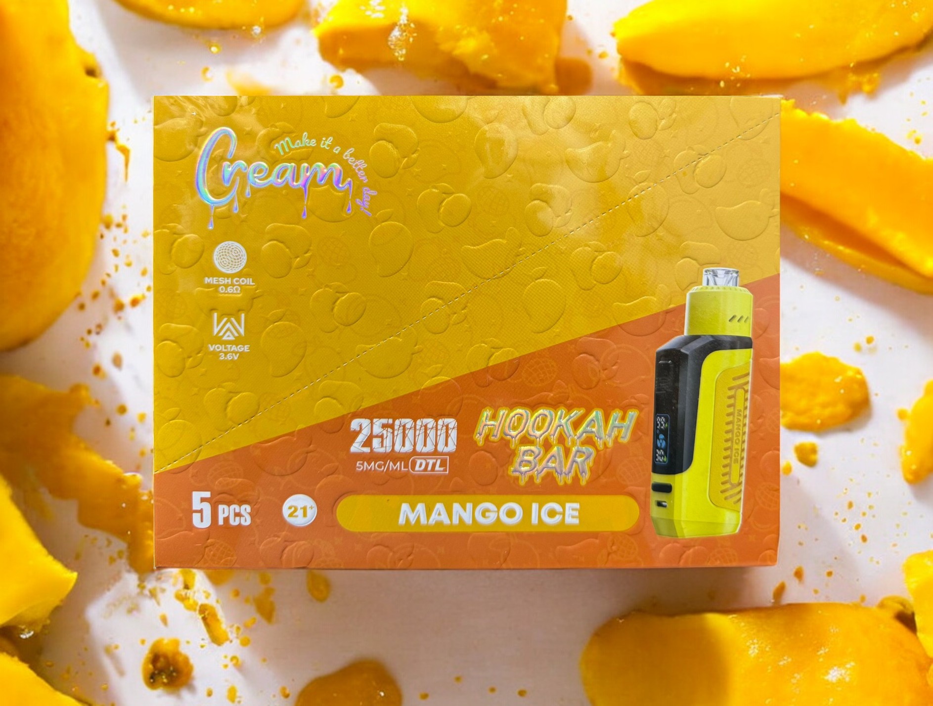 The Cream Hookah Bar 25000 Puffs Disposable is designed for MTL (mouth-to-lung) vaping, providing a seamless and enjoyable inhale, replicating the feeling of traditional smoking. The mesh coil technology guarantees a consistent and rich puff every time, with improved flavor and vapor production.