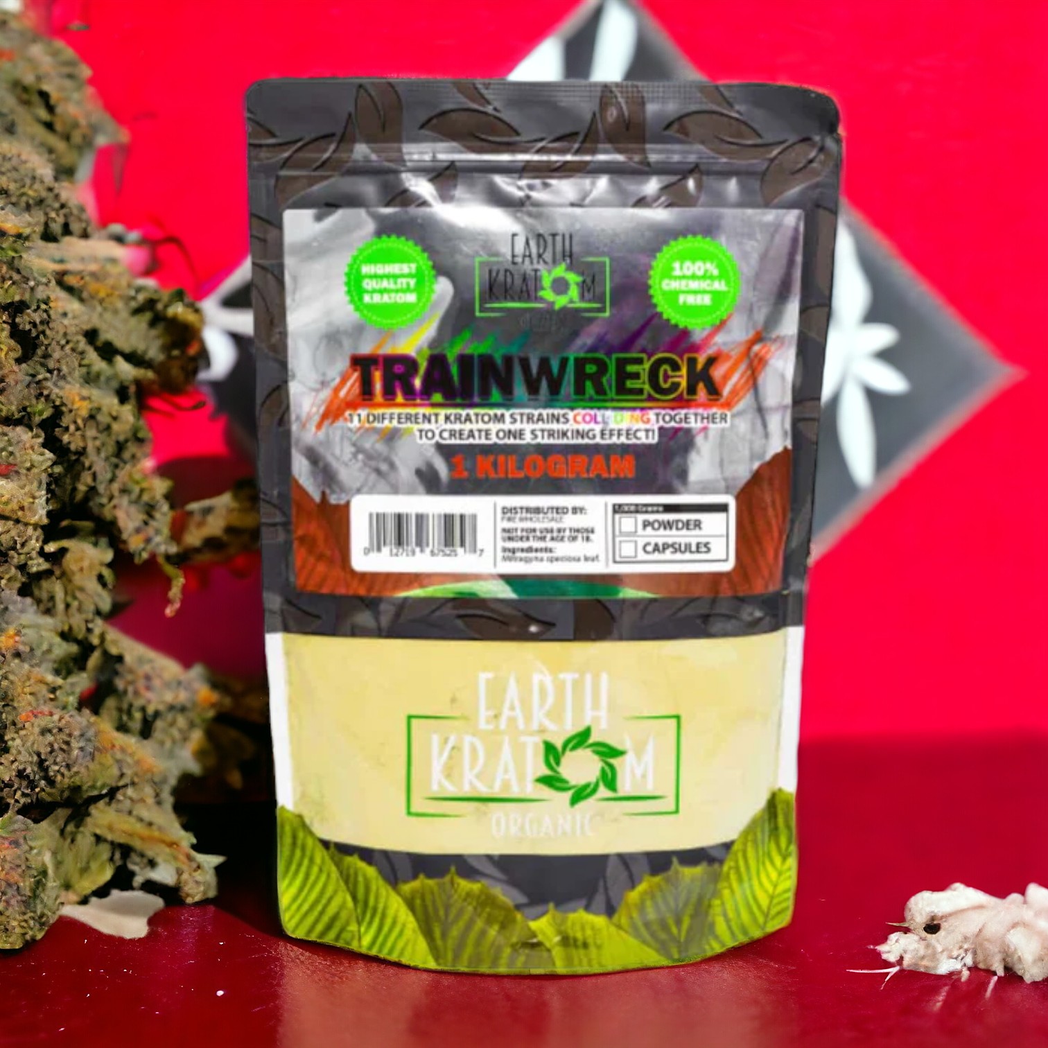 This is one of the most effective Kratom strains we carry. There is a high concentration of Mitragyna Speciosa which provides that pain relief, stimulation, and a lightening of your mood. It has been shown to give an energy boost and helps with focus. When you are out and about through your day you can be more at the moment. Don’t feel like you are on auto-pilot and enjoy the small things more. Help with the fast racing thoughts that tend to happen throughout the day when we are multitasking. It is best to focus on your important life goals. Higher Energy Level – An all-natural way to get that extra edge with more energy without the crash of sugar or caffeine. Elevated Mood – The increased focus, energy, and being in the moment also provides a better overall mood and sense of satisfaction. The Earth Kratom Trainwreck strain is the perfect strain for that hardworking and dedicated person. The person looking for that extra edge to get ahead of the competition. If your looking to take advantage of every waking hour throughout the day with great focus and awareness from an all-natural product then give this strain a try.
