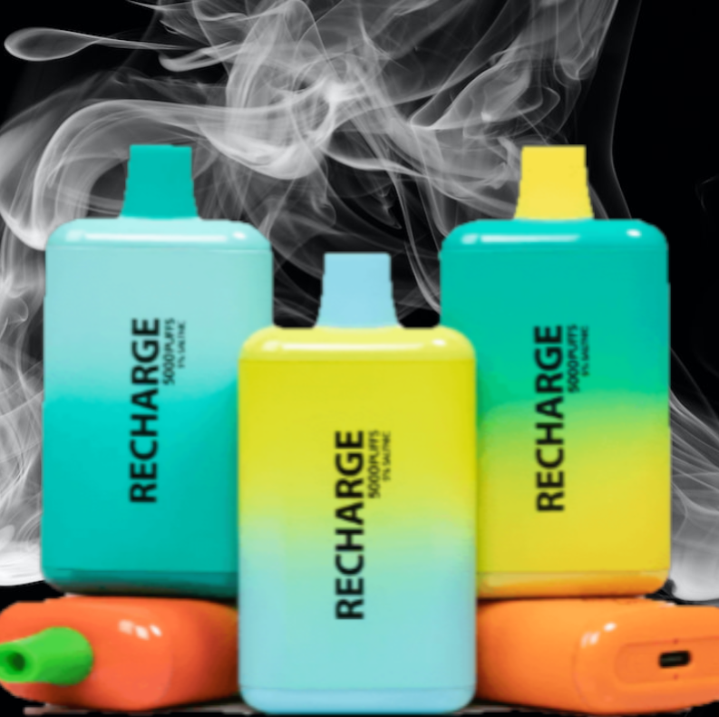 Introducing the latest and greatest in QRJoy Fume's amazing lineup of disposable vape pens. Featuring a popular flagon shaped form factor and a new silicone mouthpiece for a comfortable draw and antibacterial usage. Enjoy a new mesh coil for the best hit ever from a fume disposable. This wonderful device delivers 5000 rich, powerful hits and is available in 20 all-new flavors, some of which are never before seen. As the name suggests, the Fume RECHARGE is rechargeable via a Type-C USB cable and is powered with a 400mAh battery. Try your new favorite nicotine disposables today!