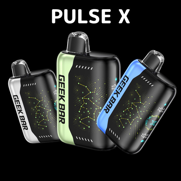 Shop the Geek Bar Pulse X 25K Disposable, featuring a 25k puff regular mode, 15k puff pulse mode, dual mesh coils, adjustable airflow, and an innovative 3D curved LED screen to deliver an unrivaled vaping experience.