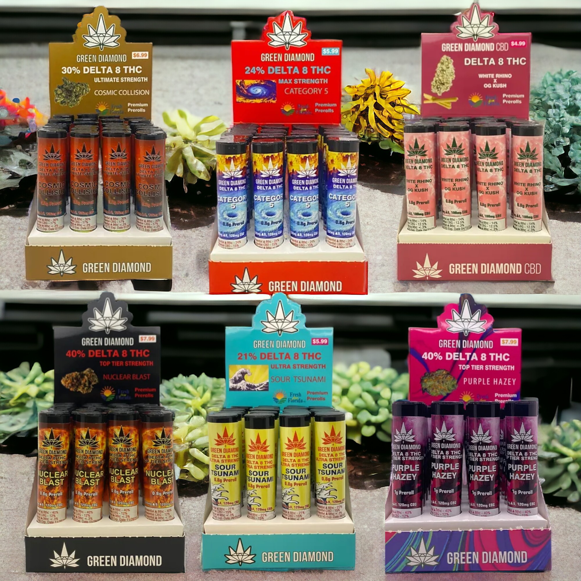 Green Diamond | D8/THCA/THCP/HHC/HHCP | Live Resin | Pre-Roll | 24CT