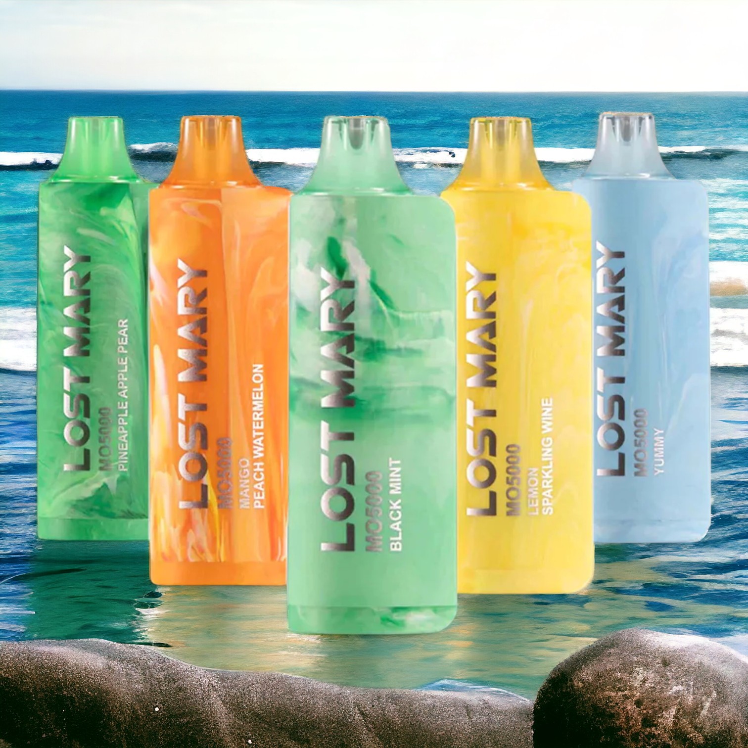 The Lost Mary MO5000 Disposable E-Cig is a compact and portable device that lasts up to 5000 puffs. The disposable vape comes pre-filled with 5% synthetic nicotine salt and is offered in many tasty flavors to pick from. It's semi round and soft silicone coating allows for comfortable holding, and users can also recharge the device via the bottom USB-Type C charge port. Give this disposable device a try if you're in the market for a sweet and flavorful experience.