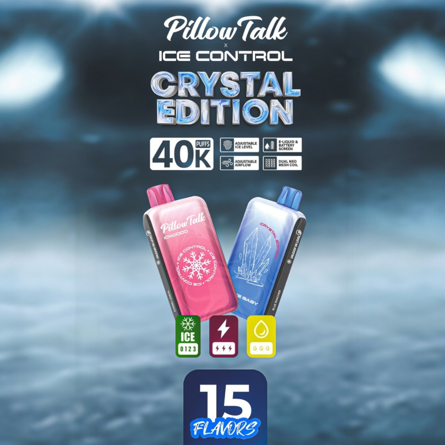 The Pillow Talk Ice Control Crystal Edition IC40000 is a high-capacity disposable vape designed for maximum convenience and customization. Boasting a 20ML e-liquid reservoir and up to 40,000 puffs, it allows users to adjust ice levels with a touch control. Featuring a dual NEO mesh coil for consistent, rich flavor, adjustable airflow, and a 700mAh battery, this device delivers a premium vaping experience. Its LED screen monitors e-liquid and battery levels, and users can personalize their cooling sensation with four ice settings, ranging from no ice to full ice, with 5% nicotine strength.