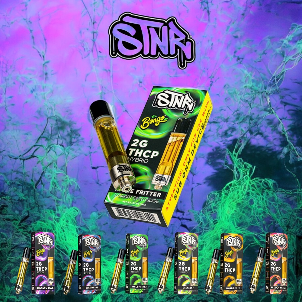Step into a new realm of vaping with STNRs Bongo 2-gram THCP Carts! Designed for sub-ohm enthusiasts, these innovative carts feature a sub-ohm coil and adjustable airflow, letting you fine-tune every puff for the perfect hit. With 2 grams of ultra-potent THCP distillate and available in six mouthwatering flavors—Passion Punch, Mango Haze, Sherbert, Apple Fritter, Slurricane, and Galactic Glue—these carts deliver bold taste and long-lasting enjoyment. Specifically crafted for sub-ohm devices running 10+ watts like their PWRHAUS device, they offer a smooth, powerful experience that sets a new standard in vaping.